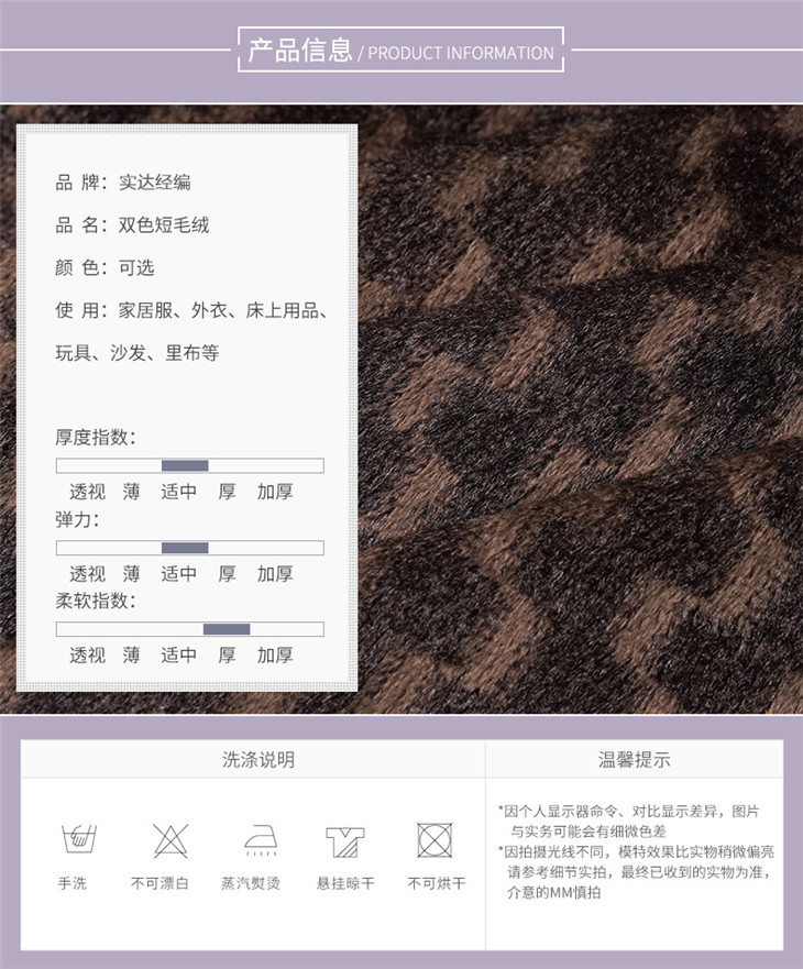 产品名称:厂家现货双色染色超柔弹力面料服装玩具家纺面料双色短毛绒