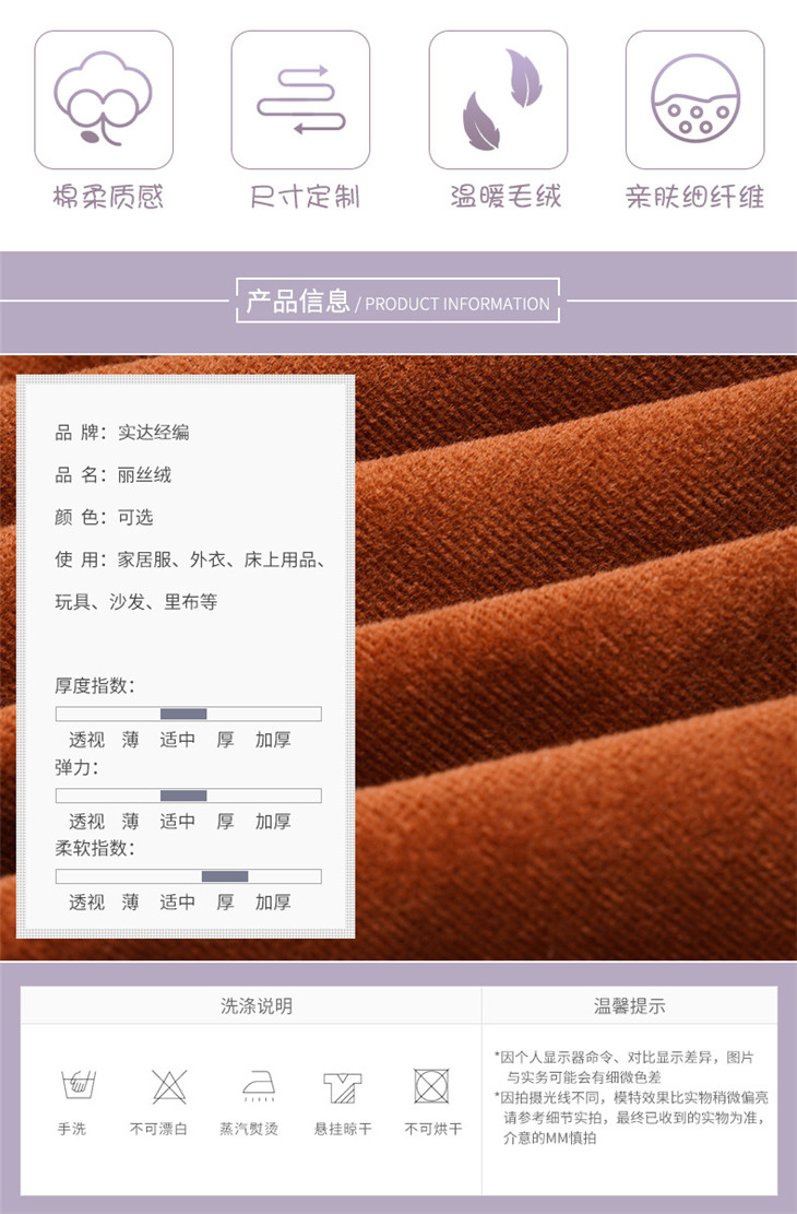 产品名称:加厚宝宝绒天鹅绒丽丝绒荷兰绒布料沙发套抱枕丝绒布服装面料